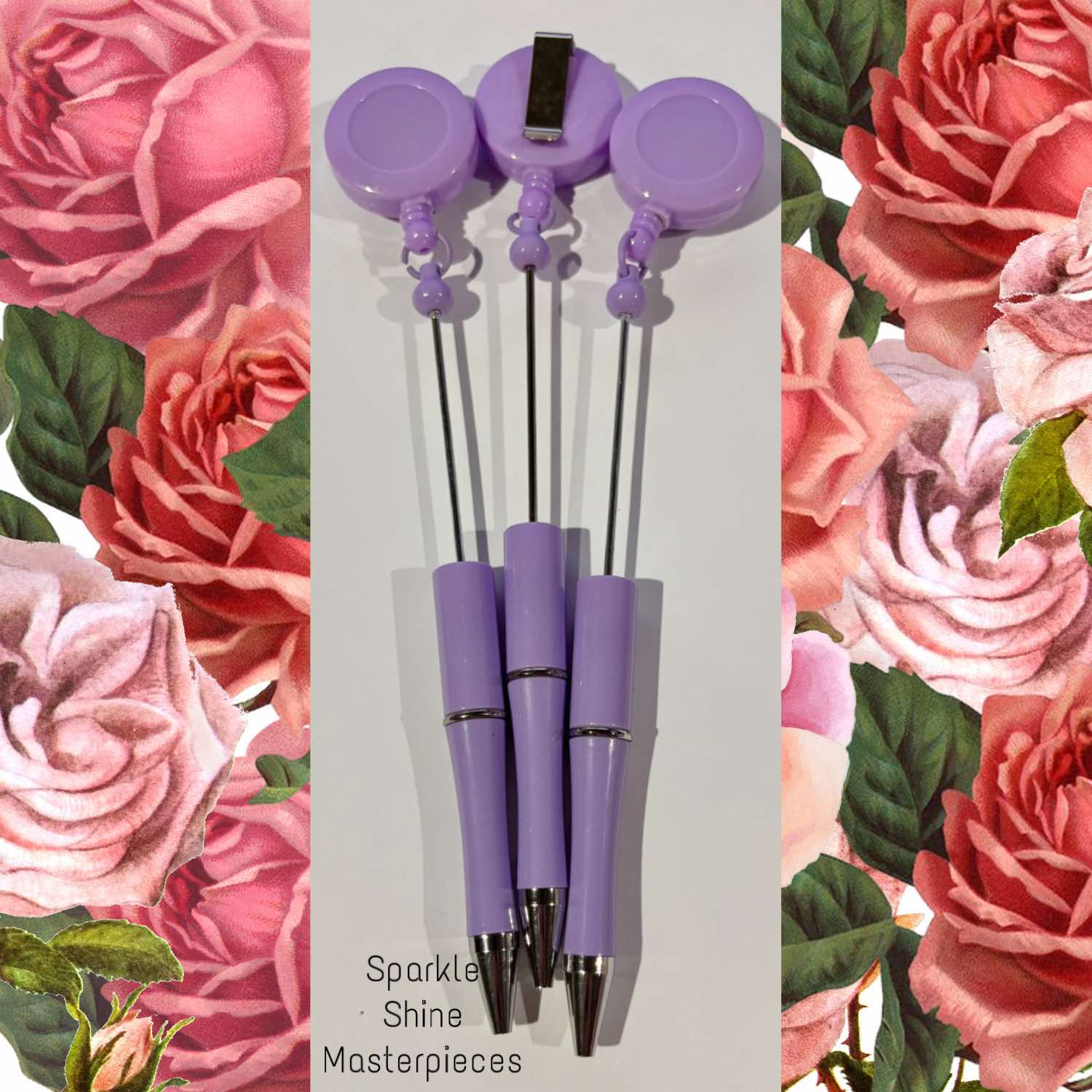 This is a beadable pen with a slide on badge reel at the top. the top badge reel is matching colors with the pen. They are sold as single units.